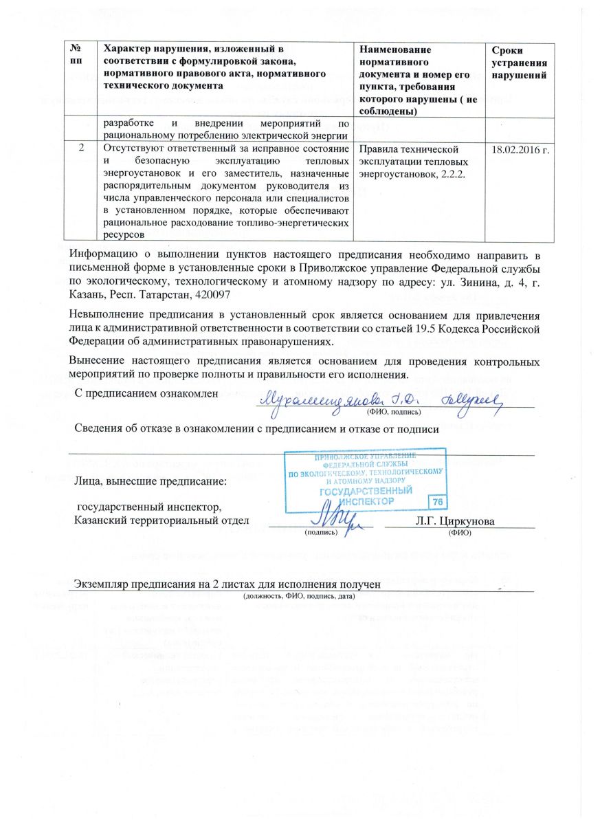 ПРЕДПИСАНИЕ ОТ 18.01.16 ЛИСТ 1, ЛИСТ 2
