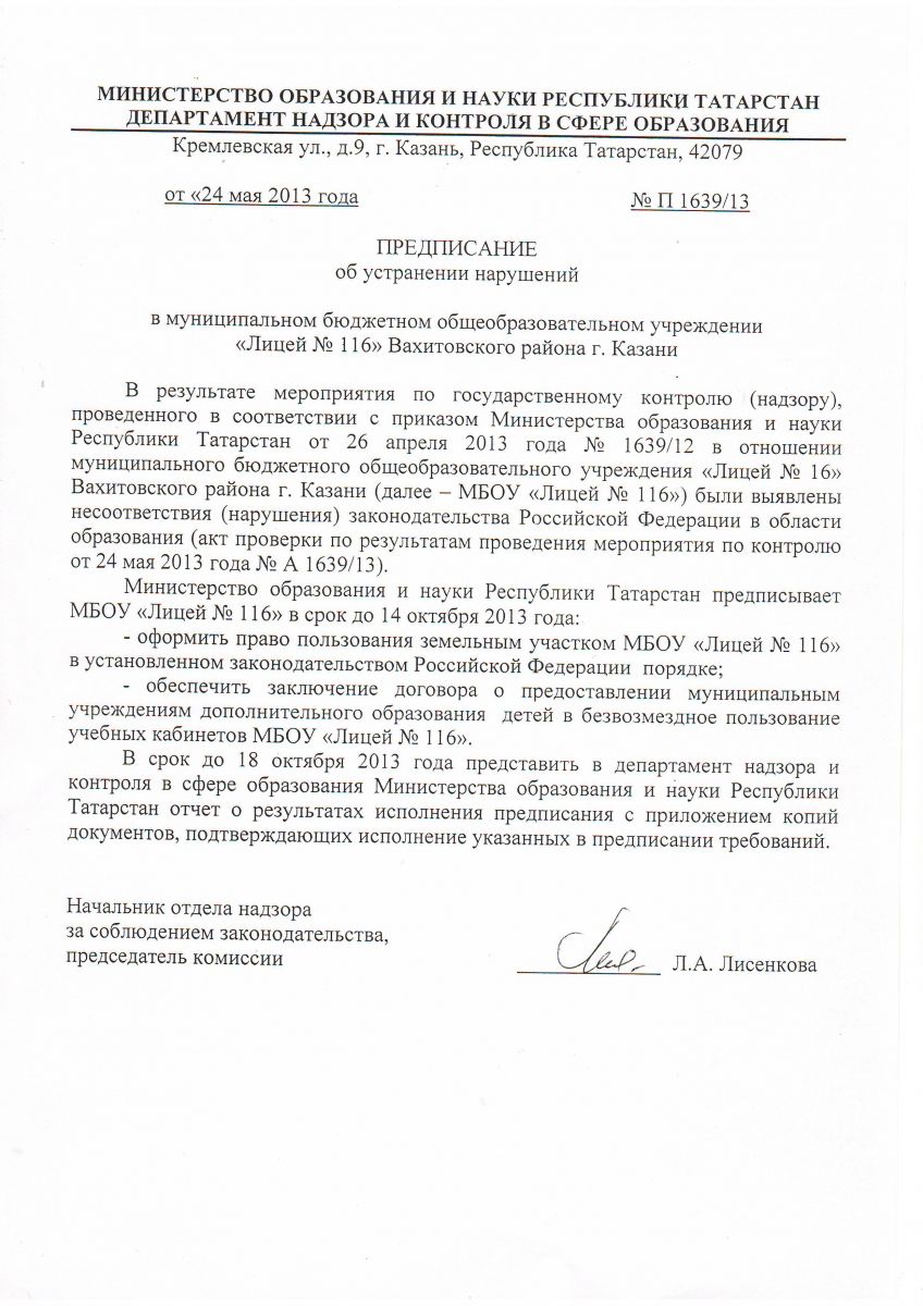 ПРЕДПИСАНИЕ ОТ 23.09.16 ЛИСТ 1, ЛИСТ 2, ЛИСТ 3