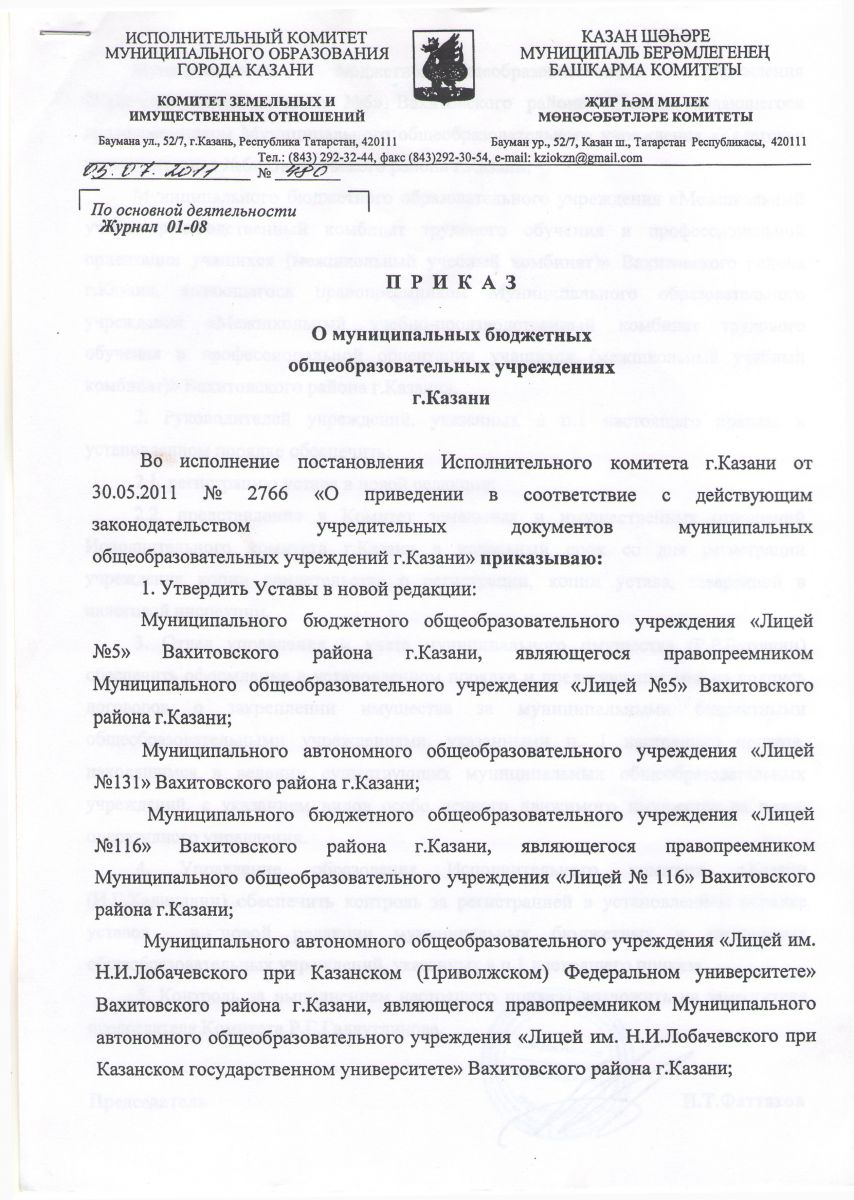 - Приказ о переименовании из МОУ в МБОУ 1 страница 2 страница