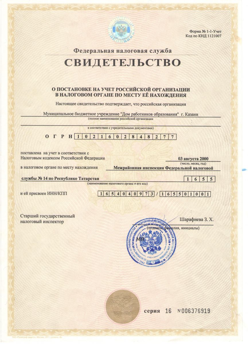 1. ИНН/КПП МБУ «Дом работников образования» г.Казани ПРОСМОТРЕТЬ / СКАЧАТЬ [jpg, 1,62Mb]