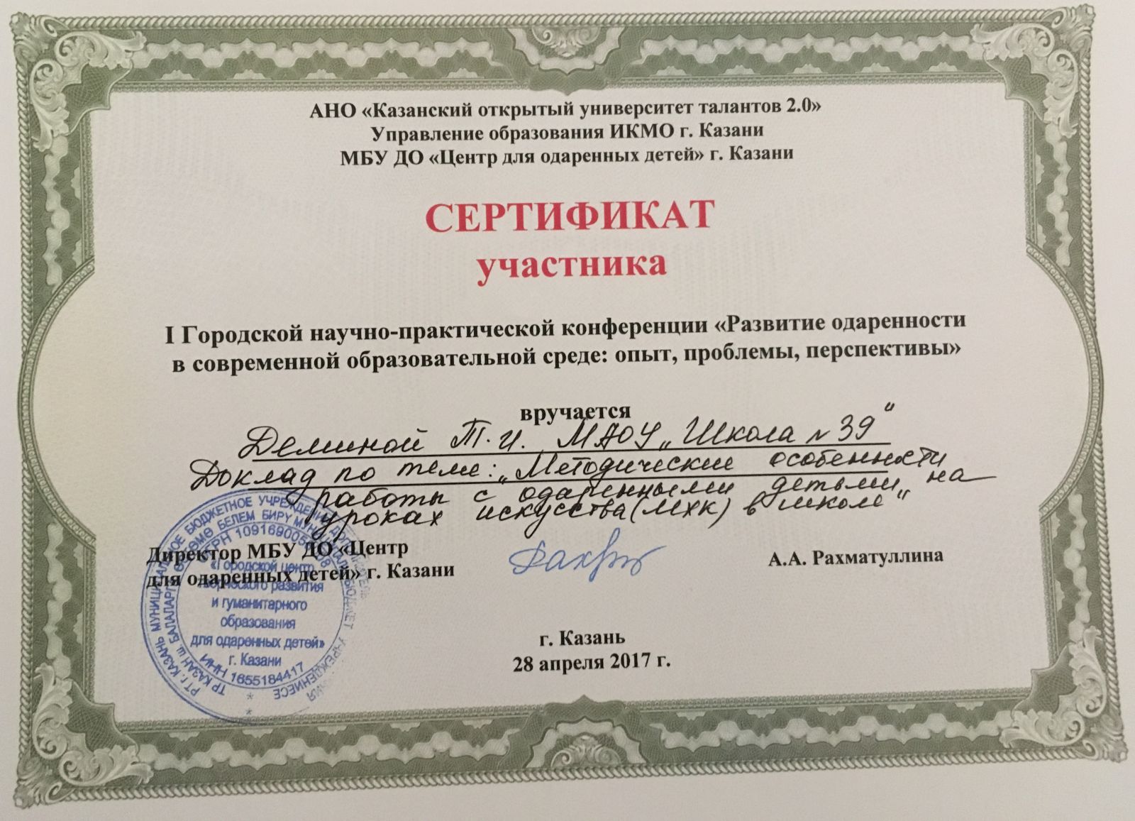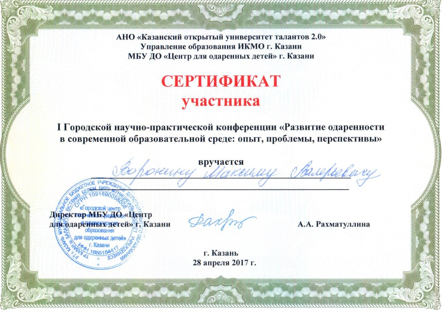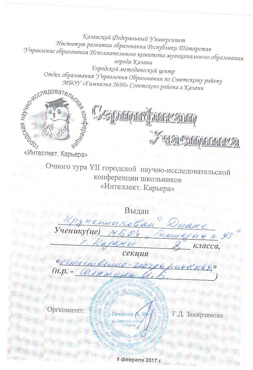 Сафонова Э.Р. Сертификат участника
