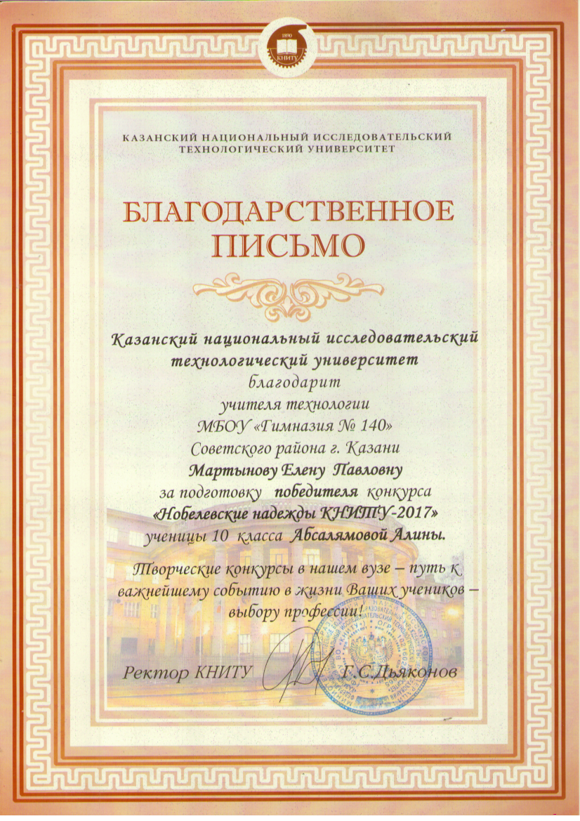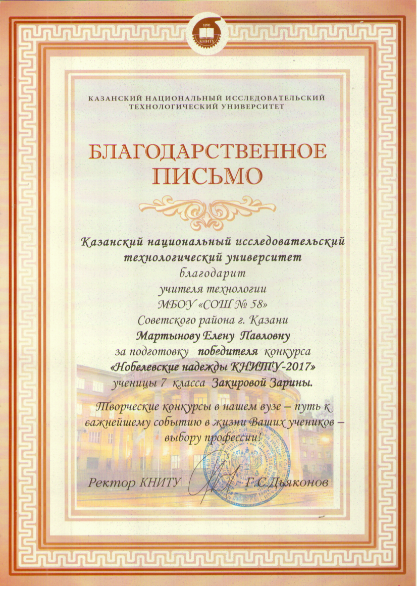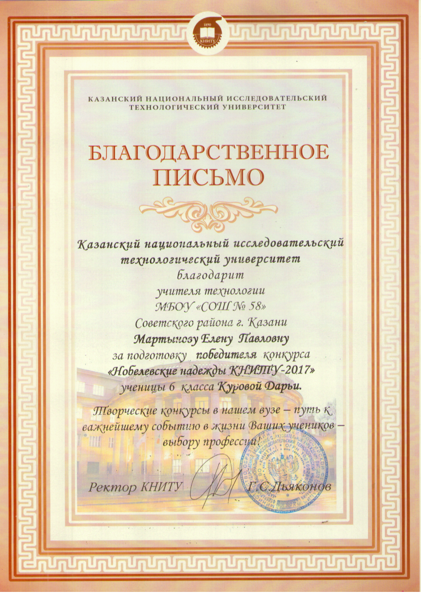 Мартынова Е.П. Благодарственное письмо
