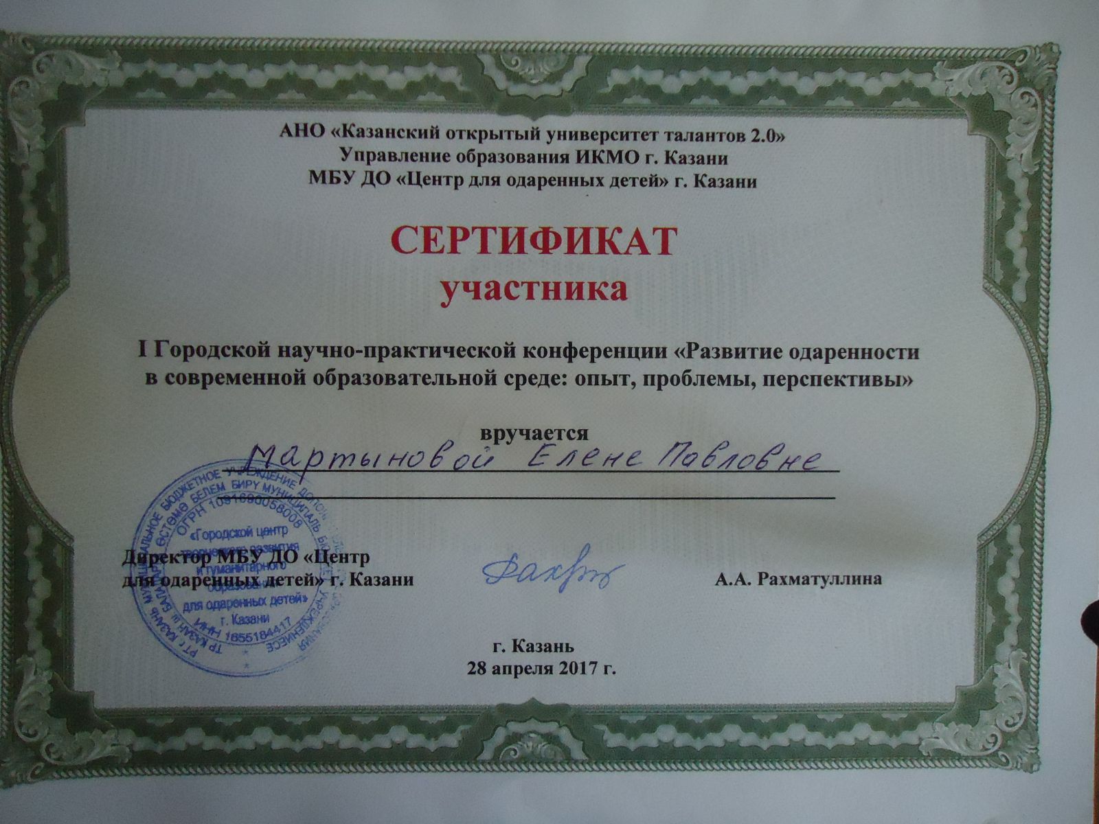 Мартынова Е.П. Сертификат участника