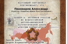 7-9 мая стартовала городская акция «Великая Победа» антинаркотического проекта «SaMoSтоятельные дети». Целью, которой является повышение уровня развития патриотизма среди детей и молодёжи, приобщение к культурным ценностям и формирование у подрастающего поколения, важности самореализации и проявления активной гражданской позиции.