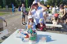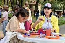 Пока педагоги-организаторы ЦДТ пробовали свои силы в вокальном конкурсе "Голос нашей команды. Голос нашего двора", педагоги-декоративники Центра организовали для гостей праздника, пришедших сегодня в сквер Аксенова, увлекательные мастер-классы. Руководитель студии "Созвездие" Милана Валерьевна Сергеева создавала интересные образы юным модникам с помощью аквагрима. Руководитель объединения "Декоративно-прикладное искусство" Ирина Валерьевна Корсакова вместе с ребятами делали брелоки из воздушного пластилина. Руководитель объединения "В мире знаний и творчества" Марина Григорьевна Бердникова (на фото) помогала гостям праздника мастерить яркие, тематические открытки.