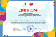 Центр детского творчества принял участие в VII всероссийском профессиональном конкурсе "Арктур" в номинации "Программа развития образовательной организации, реализующей программы дополнительного образования детей".