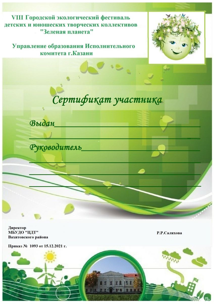 Уважаемые участники! VIII городской экологический конкурс детско-юношеского творчества "Зеленая планета" завершен. В данный момент идет сбор напечатанных дипломов от победителей и призеров конкурса. Участники, не вошедшие в категорию победителей и призеров, могут скачать сертификат участника конкурса, распечатать его и принести в Центр детского творчества по адресу: ул. Лево-Булачная, 48/1 для подписи и, таким образом, подтверждения своего участия в конкурсе.