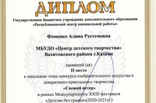 Благодарственное письмо за организацию и проведение зонального этапа республиканских конкурсов в рамках XXIII международного фестиваля "Детство без границ", получила методист Центра детского творчества, куратор детского движения Вахитовского района Людмила Михайловна Фоменко.