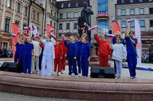 Сегодня, 9 мая, коллективу нашего Центра выпала большая честь: в центре Казани - на улице Баумана - поздравить с Праздником, с Днем Победы, уважаемых ветеранов, тружеников тыла, всех гостей и жителей нашего города и пригласить к активному участию в работе творческой концертной площадки "Помним! Гордимся!", посвященной 80-й годовщине Победы советского народа в Великой Отечественной войне. Учащиеся и педагоги учреждений дополнительного образования Вахитовского и Приволжского районов, представили свое творчество с памятью в душе, с любовью в сердце, с гордостью за историю своей страны! Яркие, соответствующие теме композиции представили в концертной программе коллективы Центра: театр эстрады, сатиры и юмора "ЕрашОК" (педагог Ирина Владиславовна Гордеева) (на фото), танцевальный коллектив "Стихия" (педагог Ольга Викторовна Холмогорцева), студия спортивно-бального танца "Фиеста" (педагог Алия Ильдаровна Сафина). Своим творчеством также поделились: духовой оркестр "Современник" детской музыкальной школы имени Джаудата Файзи Приволжского района (рук. Лебедев Михаил Владимирович), оркестр "Кадетские фанфары" детской школы искусств имени М. Балакирева Вахитовского района (рук. Галиев Рафаэль Хамитович). Праздничный концерт был организован Администрацией Вахитовского и Приволжского районов г. Казани.