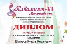Поздравляем Шакирова Рузаля, учащегося вокальной студии "Заман" и его руководителя Айсафа Ильхамовича Хазиева с получением диплома лауреата II степени в номинации "Вокальное исполнительство" международного онлайн конкурса-фестиваля речевого и вокального искусства языков народов Поволжья!