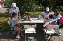 Сегодня в сквере "Авангард" прошел праздник "Открытые тайны великой страны", посвященный Дню России. В организации и проведении праздника приняли участие все учреждения дополнительного образования Вахитовского и Приволжского районов, в том числе, и наш Центр детского творчества. Яркая концертная программа, спортивные соревнования, мастер-классы по изобразительному и декоративно-прикладному творчеству - вот, что ждало посетителей сквера в этот солнечный день. Педагоги Центра Елена Евгеньевна Егорова и Марина Григорьевна Бердникова с увлечением делились с юными жителями Казани секретами мастерства в изготовлении различных поделок и сувениров к предстоящему празднику.