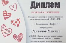 14 мая состоялся Гала-концерт городского конкурса художественного творчества для детей с ограниченными возможностями "Дар", в рамках которого прошла торжественная церемония награждения победителей и призеров конкурса. На сцену за наградой поднялся и воспитанник объединения "Вокальное искусство" Михаил Санталов (педагог Алия Ильдаровна Сафина), завоевавший диплом лауреата II степени. Поздравляем!