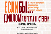 Учащиеся театра-студии "Ровесник" под руководством педагога Марии Юрьевны Андреевой приняли участие в ХIII Открытом Всероссийском детско-юношеском фестивале-конкурсе сценического мастерства "Если бы...". Итоги конкурса: коллектив театра-студии "Ровесник" и участница коллектива Анисимова Кира стали дипломантами конкурса, Маслова Вероника — лауреатом III степени. Поздравляем с успехом!!!