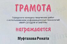 Поздравляем учащихся студии "Юный дизайнер" (педагог Даниил Алексеевич Зеленцов) с победой в городском конкурсе творческих работ с использованием информационных технологий "МИР СЕГОДНЯ И ЗАВТРА"! Касимов Карим и Сугаюнова Амина завоевали дипломы 3 степени, Муфтахова Рената получила грамоту. Педагог Даниил Алексеевич Зеленцов также был награжден грамотой "За подготовку учащихся и активное участие в городском конкурсе творческих работ". Молодцы!