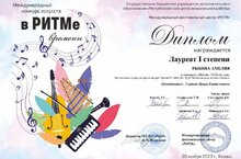 Также поздравляем со званием лауреата I степени участницу коллектива Рыбину Амелию, которая защищала часть Центра детского творчества на международном конкурсе искусств "В РИТМе времени".