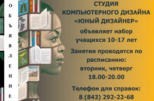 Студия компьютерного дизайна "Юный дизайнер" объявляет набор учащихся 10-17 лет. Занятия проводятся по расписанию: вторник, четверг 18.00-20.00. Добро пожаловать!