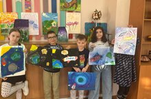 В студии "Озорные краски" под руководством Карины Маратовны Гиздатуллиной учащиеся отправились в космическое путешествие на летающих тарелках. Юпитер, Сатурн, Марс да и любая другая планета доступна учащимся студии для изучения и покорения.