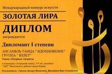 Коллектив учащихся ансамбля танца "Вдохновение" под руководством педагогов Диляры Фанисовны Гареевой и Веры Геннадьевны Никитиной стал дипломантом I степени Международного конкурса искусств "Золотая Лира"! Поздравляем!