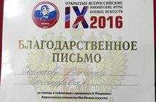 4-19 сентября в городе-курорте Анапа проходили "Открытые Всероссийские юношеские Игры боевых искусств", где наш педагог Даренков Александр Александрович был отмечен Благодарственным письмом ,от Вице-премьера России Юрия Трутнева и Первого заместителя руководителя Администрации Президента России Сергея Кириенко, лидеров Российского Союза Боевых Искусств, за большой вклад в оргнизацию и проведение соревнований.