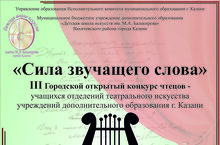 Просим ознакомиться с итогами III городского открытого конкурса чтецов учащихся отделений театрального искусства учреждений дополнительного образования города Казани «Сила звучащего слова»: