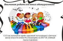 Прием заявлений в ДШИ им.М.А.Балакирева на 2017-2018 учебный год 12.05.2017