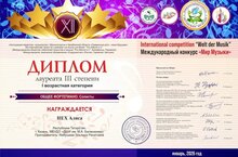 Учащаяся музыкального отделения Алиса Нех (преподаватель Ямбушева Эльнара Ринатовна) приняла участие в Международном конкурсе классического искусства «Зимний вальс - 2025» и стала Лауреатом I степени в номинации инструментальное исполнительство. Общее фортепиано!