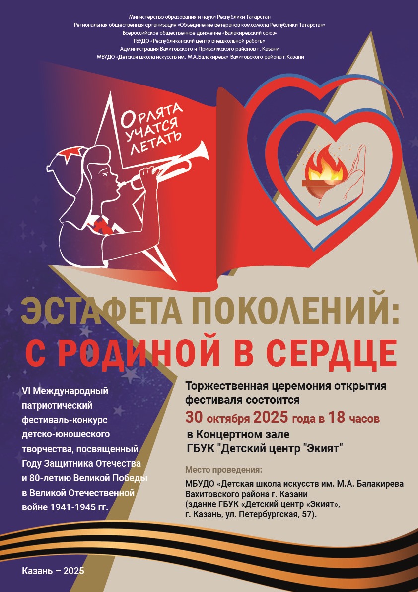 30 октября 2025 года состоится первый конкурсный день VI Международного патриотического фестиваля-конкурса детско-юношеского творчества «ОРЛЯТА УЧАТСЯ ЛЕТАТЬ»!