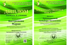 Поздравляем Марию и Преподавателя Армянинову Гульнару Хасимовну с прекрасным результатом и желаем дальнейших успехов!
