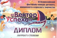 Учащиеся детской хореографической студии "Танцевальный Проспект" ДШИ им. М.А.Балакирева приняли участие в III Всероссийском фестивале- конкурсе детского, юношеского и взрослого творчества "Вектор Успеха", который проходил в городе Йошкар- Оле и стали Лауреатами I степени!