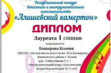 Учащаяся музыкального отделения ДШИ им. М. А. Балакирева на базе лицея 186 преподавателя Сайфутдиновой С.С. Башарова Ксения приняла участие в Республиканском конкурсе вокального и инструментального исполнительства"Алишевский камертон" и стала Лауреатом l степени в номинации «Инструментальный жанр». Поздравляем и желаем дальнейших успехов!