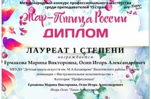 Диплом лауретата 1 степени в конкурсе среди преподавателей 15 стран 19.02.2024