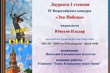 Учащийся музыкального отделения на базе лицея № 186 преподавателя Халиковой Н.Г. Юнусов Ильдар стал лауреатом I степени на IV Всероссийском конкурсе «Эхо Победы»!