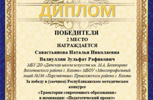 Поздравляем преподавателей Савастьянову Наталью Николаевну и Валиуллина Зульфата Рафиковича с победой во номинации: «Педагогический проект».