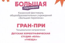 Обучающиеся детской хореографической студии «Юла» (преп. Крутикова Ю.В. и Мазитова А.М.) хореографического отделения ДШИ им. М.А.Балакирева на базе Многопрофильного лицея №186 «Перспектива» стали обладателем ГРАН-ПРИ в номинации «Хореография» городского конкурса среди общеобразовательных учреждений города «Большая перемена» за номер «И, вновь, Весна к нам в двери постучится».