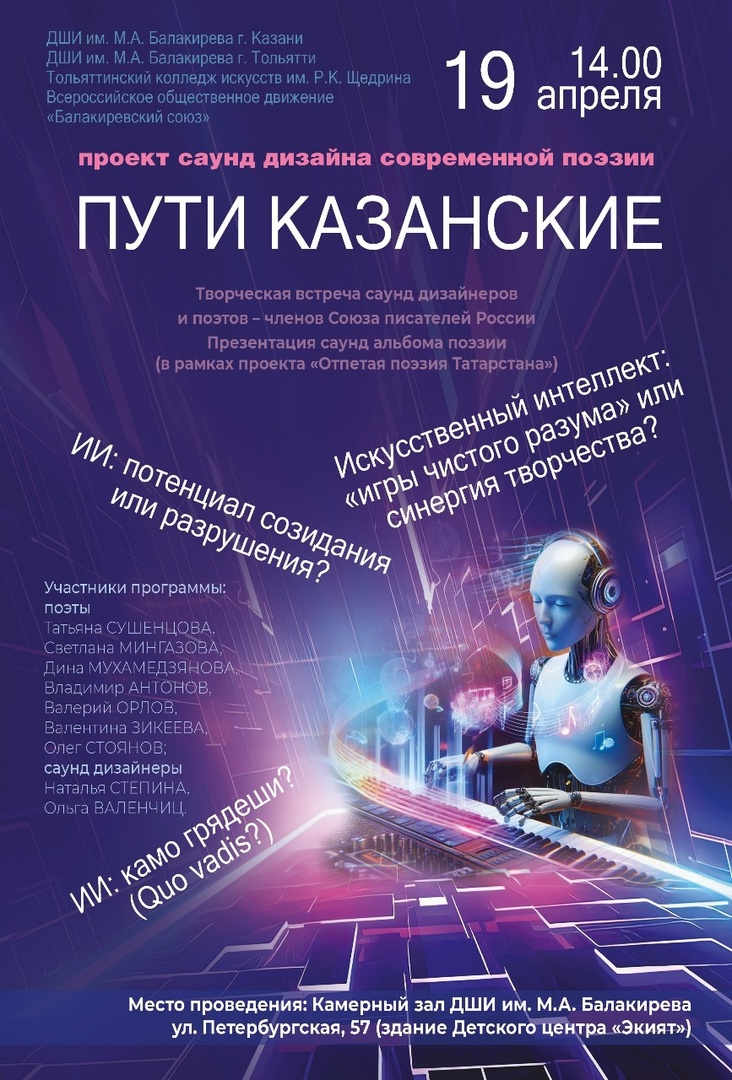 19 апреля в камерном зале нашей школы прошла творческая встреча саунд дизайнеров и поэтов - членов Союза писателей России (в рамках проекта «Отпетая поэзия Татарстана»).
