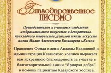 Этой осенью преподаватели и учащиеся отделения изобразительного искусства и декоративно-прикладного творчества ДШИ им.М.А. Балакирева инициировали благотворительную акцию в помощь пациентам Казанского хосписа. Ребята были готовы подарить свои работы, если это сможет принести пациентам хотя бы немного радости. Благотворительная акция реализована в рамках совместного проекта с Российским коммитетом Международной некомерческой организации "Детские деревни-SOS". Таким образом Правление Фонда Анжелы Вавиловой организовало постоянную экспозицию творческих работ юных художников в Казанском хосписе, чему мы очень рады!