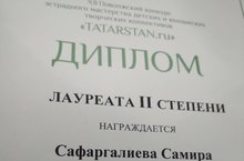 23 января 2020 года в Центре детского творчества Вахитовского района г.Казани состоялся XII Поволжский конкурс эстрадного мастерства детских и юношеских творческих коллективов «TATARSTAN.ru».По результатам конкурса, учащаяся нашей школы, Сафаргалиева Самира (преподаватель – Маева Т.И.), в номинации «Инструментальный жанр классический – возрастная категория 6 – 9 лет» – Лауреат II степени.ПОЗДРАВЛЯЕМ!!! -