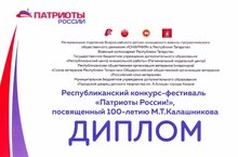 С 4 по 6 ноября 2019 года в Городском дворце детского творчества им.А.Алиша проходил Республиканский конкурс-фестиваль «Патриоты России», посвящённый 100-летию со дня рождения советского конструктора-оружейника Михаила Тимофеевича Калашникова. В мероприятии приняли участие учащиеся нашей школы.По результатам конкурса-фестиваля:- в номинации «Защита проекта. Музейная педагогика», Насыбуллин Дамир (руководители – Хабибулина И.Г., Сафина А.Г.) – Диплом Лауреата I степени;- в номинации «Защита проекта. Итоги работы», Ишмуратова Алина (руководители – Хабибулина И.Г., Сафина А.Г.) – Диплом Лауреата III степени.ПОЗДРАВЛЯЕМ НАШИХ ЛАУРЕАТОВ И ЖЕЛАЕМ ИМ ДАЛЬНЕЙШИХ ТВОРЧЕСКИХ УСПЕХОВ!!! -