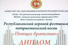 20 апреля 2019 года в ДМХШ № 3 Ново-Савиновского района г.Казани состоялся Республиканский фестиваль патриотической песни «Поющее братство».В фестивале принял участие и был награждён дипломом фестиваля сводный хор мальчиков «Орлята» ДМШ №7 им.З.В.Хабибуллина (руководители – Сафина А.Г., Арсентьева Е.В., Зотова А.А., концертмейстер – Романова И.П.).ПОЗДРАВЛЯЕМ!!! -