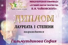 - Гильмутдинова София – Лауреат I степени;