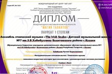По результатам конкурса, в номинации «Инструментальное исполнительство / Этническая музыка / Учитель – ученик», ансамбль этнической музыки “The Irish Snake” (художественный руководитель – Хабибулин Р.Н.; участники: Ашрапова Камила, Габитов Эмир, Северьянова Рената, Сафин Таир) – Лауреат I степени.