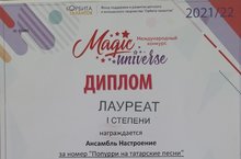 6 марта 2022 года в КДК им.В.И.Ленина под эгидой Фонда поддержки и развития детского и юношеского творчества «Орбита талантов» состоялся Международный конкурс «Magic Universe», в котором приняли участие учащиеся отделения эстрадного вокала нашей школы (преподаватели – Валеева Р.С., Магнавеева Л.Р., Кесарева А.С.).