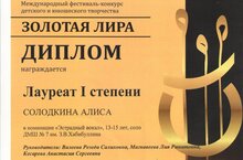12 марта 2022 года в казанском Доме культуры «Полимер» под эгидой Международного фестивального центра «Ритм» и ГБУДО «Республиканский центр внешкольной работы» состоялся Международный фестиваль-конкурс детского и юношеского творчества «Золотая лира», в котором приняли участие учащиеся отделения эстрадного вокала нашей школы (преподаватели – Валеева Р.С., Магнавеева Л.Р., Кесарева А.С.).