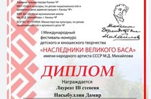 - Хаертдинов Ильяс (преподаватель – Валеева Р.Б.) – Дипломант III степени.
