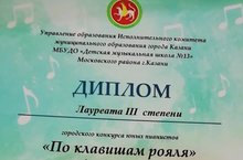 23 марта 2021 года в МБУДО «Детская музыкальная школа №13» Московского района г.Казани в онлайн-формате состоялся Городской конкурс юных пианистов «По клавишам рояля», в котором приняли участие учащиеся нашей школы.