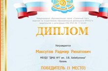 По итогам конкурса, за работу «История моей семьи в летописи», Максутов Радмир (преподаватель – Хабибулина И.Г.) награждён Дипломом победителя (I место).