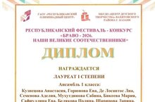 Поздравляем вокальные ансамбли " Клубнички", "Малинки" и " Весёлые нотки" ( руководитель Гизатуллина Камиля Лемаровна) с прекрасными результатами в республиканском конкурсе " Браво- 2026"!