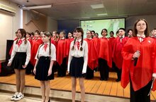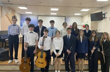 Свои музыкальные номера-поздравления подарили хор 1 класса и юный гитарист Никита Кивокурцев.