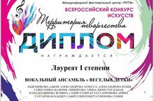 Поздравляем вокальный ансамбль 3 класса " Весёлые детки" ( руководитель Гизатуллина К.Л.) с победой во Всероссийском конкурсе искусств " Территория творчества"!