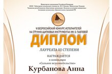 Преподаватель гитары Курбанова Анна Сергеевна стала Лауреатом 3 степени, а Аминова Диана- Дипломантом конкурса!
